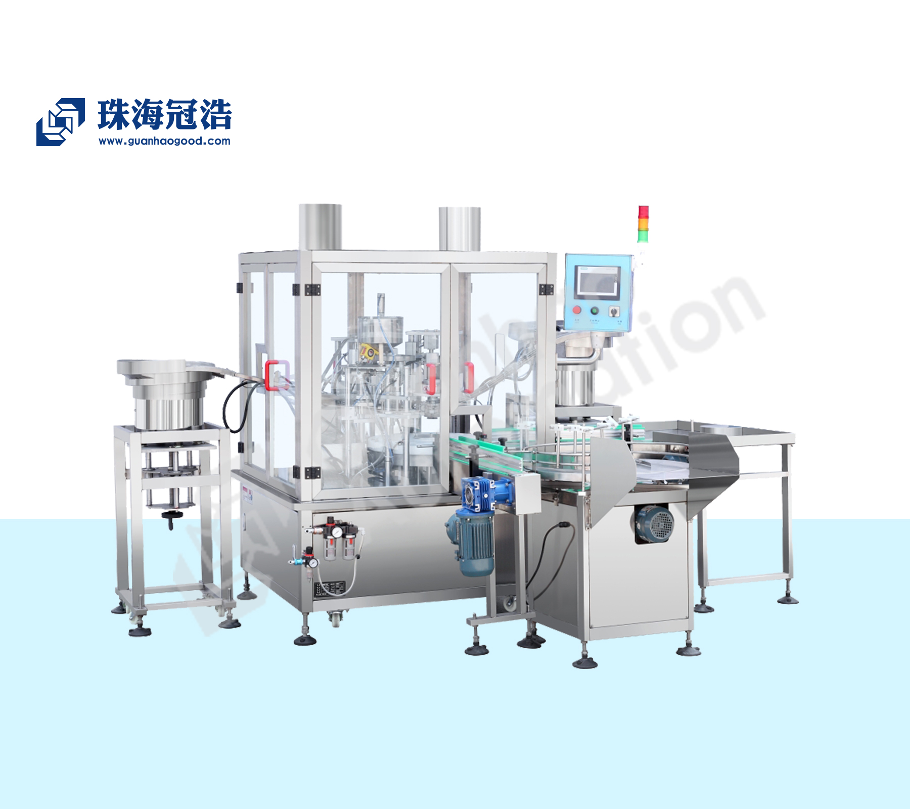 珠海冠浩機(jī)械客戶訂做機(jī)械系列-番茄醬生產(chǎn)線,主要由10頭灌裝機(jī)、直線式旋蓋機(jī)、立式圓瓶貼標(biāo)機(jī)、送瓶轉(zhuǎn)盤組成。進(jìn)口PLC程序控制,灌裝嘴及料槽材料等接觸液體部位均為304不繡鋼,密封圈采用聚四氟乙烯。
